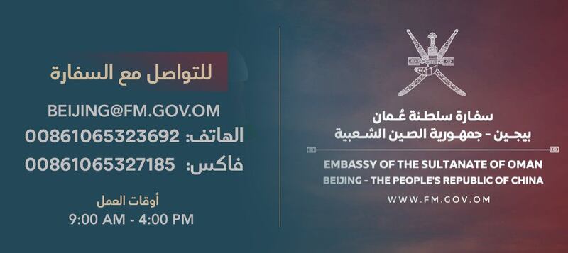 ودعت السفارة المواطنين العمانيين توخي الحيطة والحذر والالتزام بالإجراءات الاحترازية التي تتخذها السلطات المحلية الصينية في تلك المناطق، والتواصل مع السفارة في حالات الضرورة عن طريق الاتصال بالأرقام الموضحة على حساب السفارة بمنصة X.