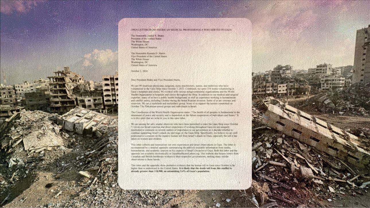 This is an open letter to @POTUS and @VP signed by 99 American healthcare workers who have volunteered in Gaza since October 7, 2023. The letter addresses what we saw, and how American policy in #Gaza should change. Please see https://t.co/qvL4R0Snr9 to read the letter.