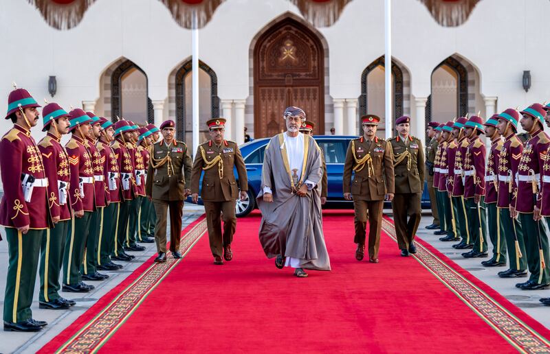 عقب ذلك توجّه سُلطان البلاد المفدّى وفخامةُ الرئيس الضيف إلى القاعة مرورًا بين صفّين من حرس الشّرف من الحرس السُّلطاني العُماني.