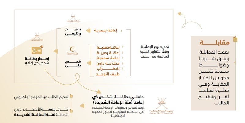 وذكر الصندوق أن المنفعة المستحقة تبلغ 130 ريالًا عمانيًا تصدر للمنتفع، شرط أن يكون عماني وأن يكون من إحدى فئات الإعاقة المذكورة أعلاه وأن يكون مقيمًا في سلطنة عمان.