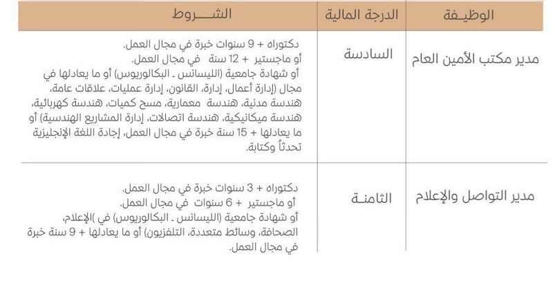 وفيما يلي تفاصيل الوظيفتين وشروطهما: