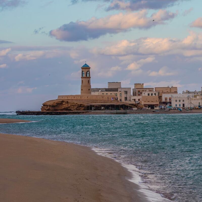 قام البرتغاليون ببناء هذه المنارة التي تعد من أقدم المنارات البحرية في سلطنة عمان، وقد كانت في الأساس برج حماية حُول فيما بعد إلى منارة استخدمت لتوجيه سفن الداو التقليدية للوصول بأمان إلى بحيرة صور، وفقا لموقع اكتشف عُمان.