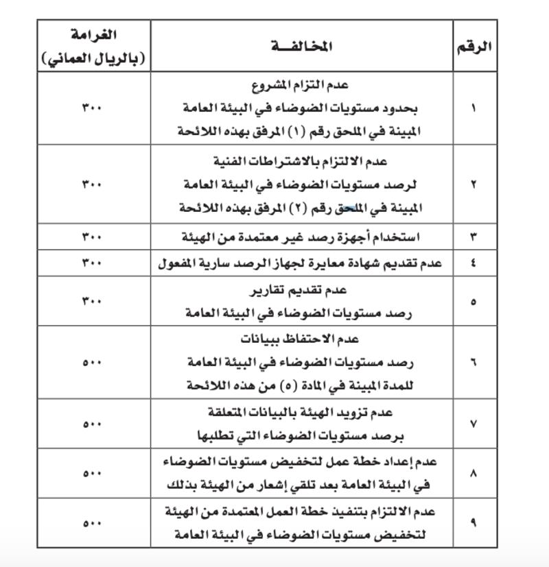 تُفرض الغرامات الإدارية الموضحة في الجدول الآتي على كل من يخالف أحكام هذه اللائحة.