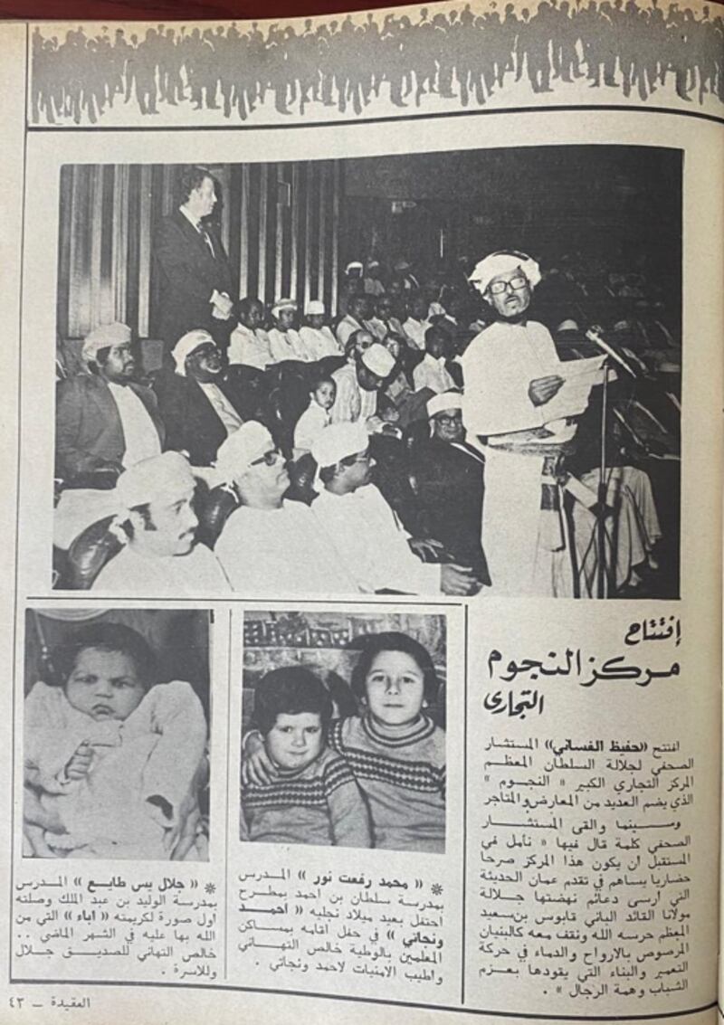 ويستطرد: " ثم أنشأت دورا للسينما في صور وصلالة، ثم كانت أحدث دار للعرض في المنطقة وهي سينما (عمان بلازا) التي افتتحت في 18 مارس 1975 وبها معارض ومطاعم، وهي مكيّفة الهواء ومن الدرجة الأولى“.