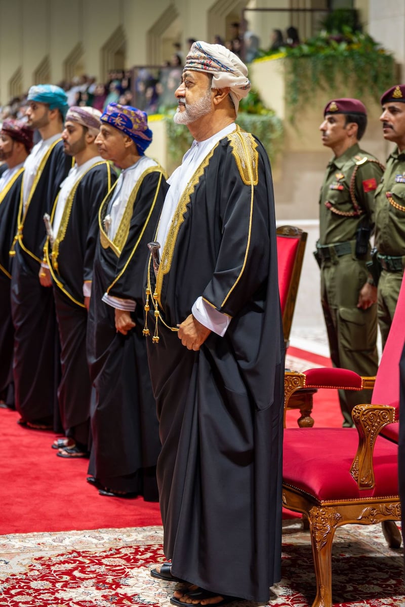 وعند اعتلاء عاهلِ البلاد المفدّى المقصورة السُّلطانية عزفت الفرقة الموسيقيّة السّلام السُّلطانيَّ العُمانيَّ.