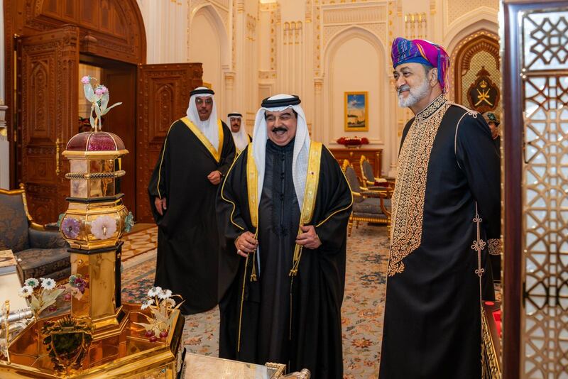 أقام حضرةُ صاحبِ الجلالةِ السُّلطان هيثم بن طارق المعظم -حفظهُ اللهُ ورعاهُ- مأدبة عشاء رسميّةً بضيافة قصر العلم العامر؛ تكريمًا لأخيه حضرةِ صاحبِ الجلالةِ الملك حمد بن عيسى آل خليفـة ملك مملكة البحريـن.