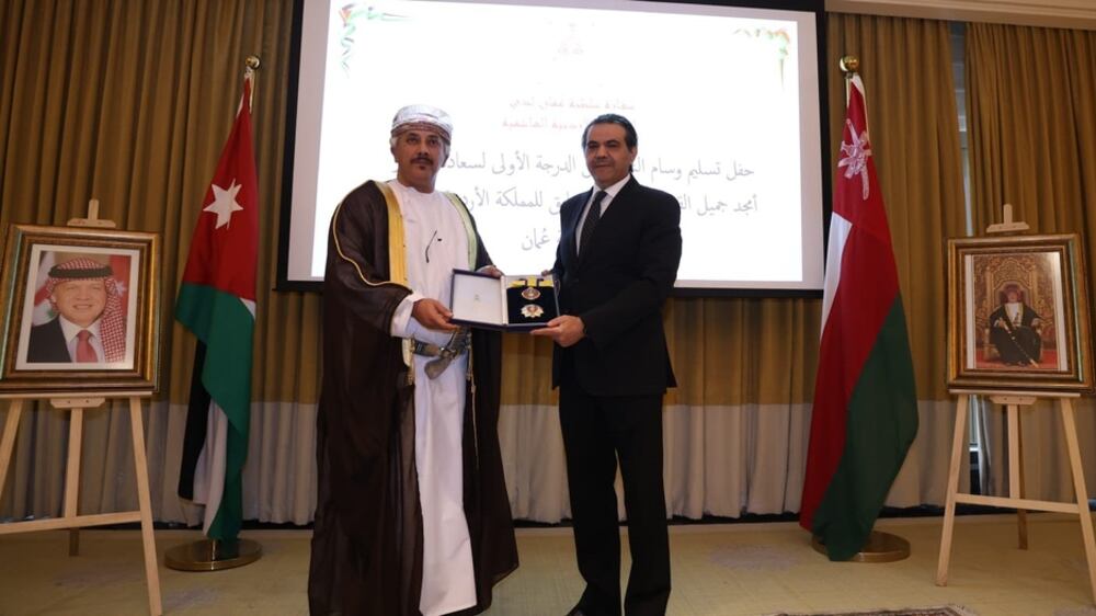قام بتسليم الوسام سعادة السفير الشيخ فهد بن عبدالرحمن العجيلي سفير سلطنة عُمان لدى المملكة الأردنية الهاشمية في الحفل الذي أُقيم اليوم بالعاصمة الأردنية عمّان.