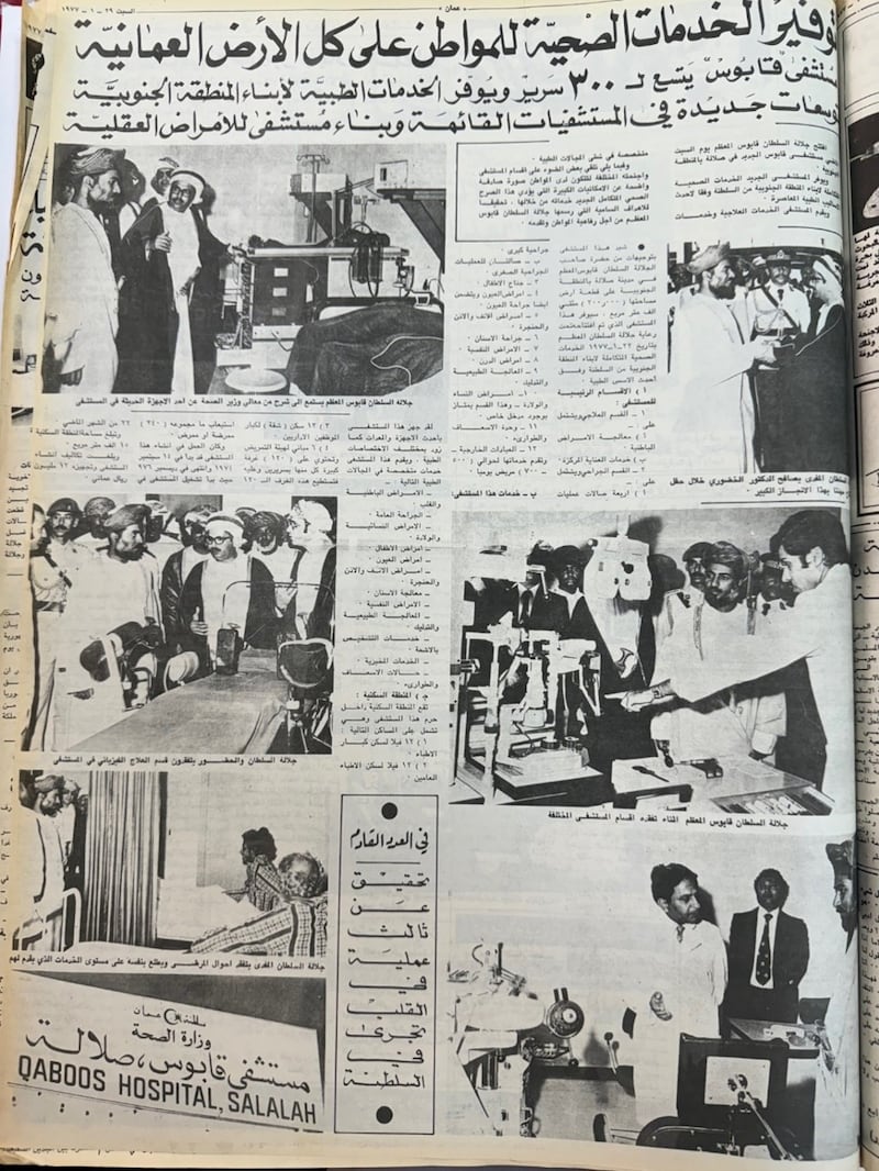 “أثير” تتذكر مرور 48 عامًا على افتتاح مبنى مستشفى السلطان قابوس بصلالة الذي افتتح يوم السبت بتاريخ 22 يناير 1977م تحت رعاية السلطان قابوس بن سعيد بن تيمور طيّب الله ثراه، وقامت الصحف ووسائل الإعلام المحلية وقتها بتغطية حفل الافتتاح.