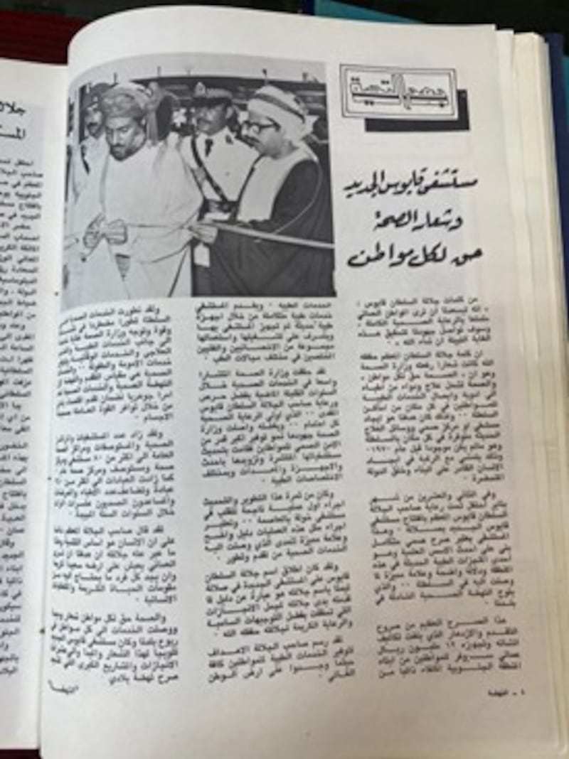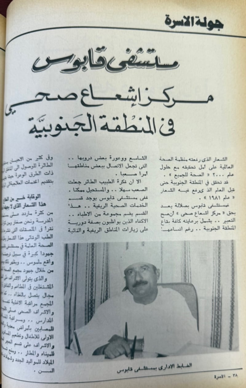 - مستشفى قابوس مركز إشعاع صحي في المنطقة الجنوبية، تقرير منشور في مجلة الأسرة، العدد 183، 1 أغسطس 1982م.