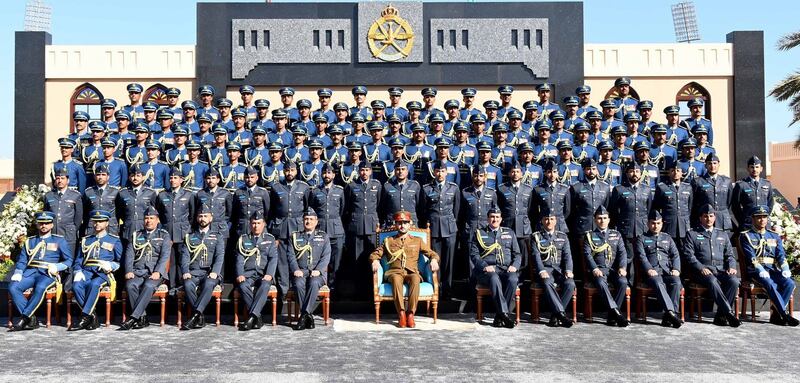وفي ختام احتفال سلاح الجو السلطاني العُماني بيومه السنوي وتخريج الضباط المرشحين، التُقطت الصورة التذكارية لصاحب السمو السيد وزير الثقافة والرياضة والشباب، راعي المناسبة، مع خريجي دورات الضباط المرشحين.