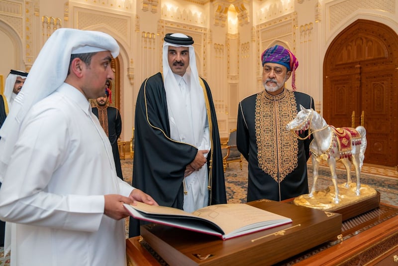 أقام حضرةُ صاحبِ الجلالةِ السُّلطان هيثم بن طارق المعظم -حفظهُ اللهُ ورعاهُ- مأدبةَ عشاءٍ رسميّةً بضيافة قصر العلم العامر؛ تكريمًا لأخيه حضرةِ صاحبِ السُّمو الشّيخ تميم بن حمد آل ثاني أميـرِ دولة قطر الشقيقة بمناسبة زيارة ”دولةٍ“ يقوم بها سُموُّه إلى سلطنة عُمان.