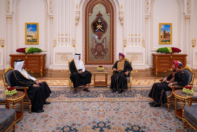 عقب إجراء مراسم الاستقبال الرسمية عقد جلالةُ السُّلطان المُعظّم وأخوه سُموّ الشّيخ أميرُ دولة قطر -حفظهُما اللهُ ورعاهُما- جلسةَ مباحثاتٍ رسميّةً بقصر العلم العامر، تم خلالها استعراض علاقاتِ التّعاون والتّفاهم والإخاء التي تربط بين البلدين الشقيقين، ومجالاتِ الشّراكة والاستثمار القائمة، والفرصَ المُتاحة لتنميتها وتعزيزها، وناقشت الآراء حول الأوضاع الرّاهنة في العالم، وتداعياتها المُستقبليّة على المنطقة، وبحثت مسارات السّلام والاستقرار.