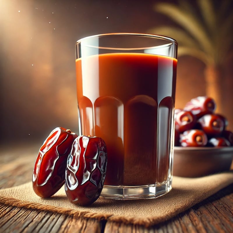 يُعد التمر مصدرًا ممتازًا للطاقة الطبيعية، وهو غني بالألياف والفيتامينات والمعادن التي تساعد في تعزيز النشاط بعد الإفطار، ويمكن تحضير عصير التمر بنقع التمر في الماء أو الحليب ثم خلطه للحصول على مشروب مغذٍ ومفيد للصائمين.