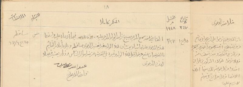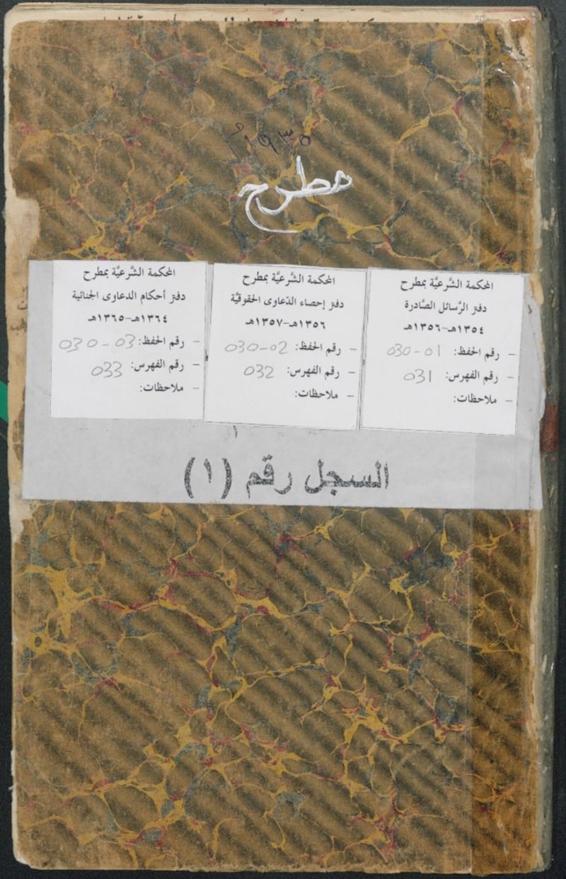 ومن ضمن الدفاتر التي عرضها: دفتر أحكام دعاوى النَّفقات 1361هـ-1375هـ، ودفتر أحكام الدّعاوى الحقوقيَّة 1365هـ، ودفتر أحكام الدّعاوى الحقوقيَّة 1371هـ-1373هـ، ودفتر أحكام الدّعاوى الحقوقيَّة 1368هـ-1369هـ، ودفتر أحكام الدّعاوى الحقوقيَّة 1375هـ-1377هـ. كما عرض لأقدم دفتر في مجموعة دفاتر المحكمة الشَّرعية بمطرح (1935م) وفيه: دفتر الرسائل الصّادرة 1354هـ-1356هـ، ودفتر إحصاء الدّعاوى الحقوقيَّة 1356هـ-1357هـ، ودفتر أحكام الدّعاوى الجنائيَّة 1364هـ - 1365هـ.