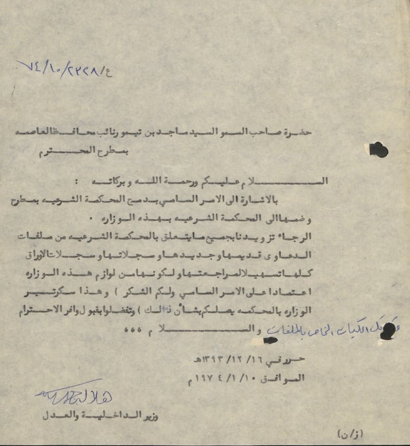 وعرض الباحث بدر الراجحي في ختام تقديمه لورقته المهمة، لوثيقة مهمة فيها إشارة إلى الأمر السَّامي الصَّادر من السُّلطان قابوس بن سعيد بدمج المحكمة الشَّرعيَّة بمطرح وضمّها إلى المحكمة الشَّرعية بمسقط.
