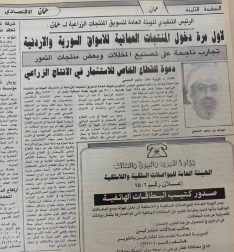 “أثير” تقترب في هذا التقرير من كواليس إنشاء تلك الهيئة، وأبرز الأنشطة التي قامت بها، وجهودها في مجال تسويق المنتجات العمانية، وتوعية المزارعين، وغيرها من الجهود التي قامت بها.