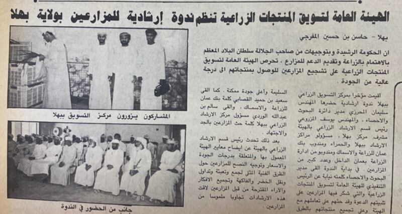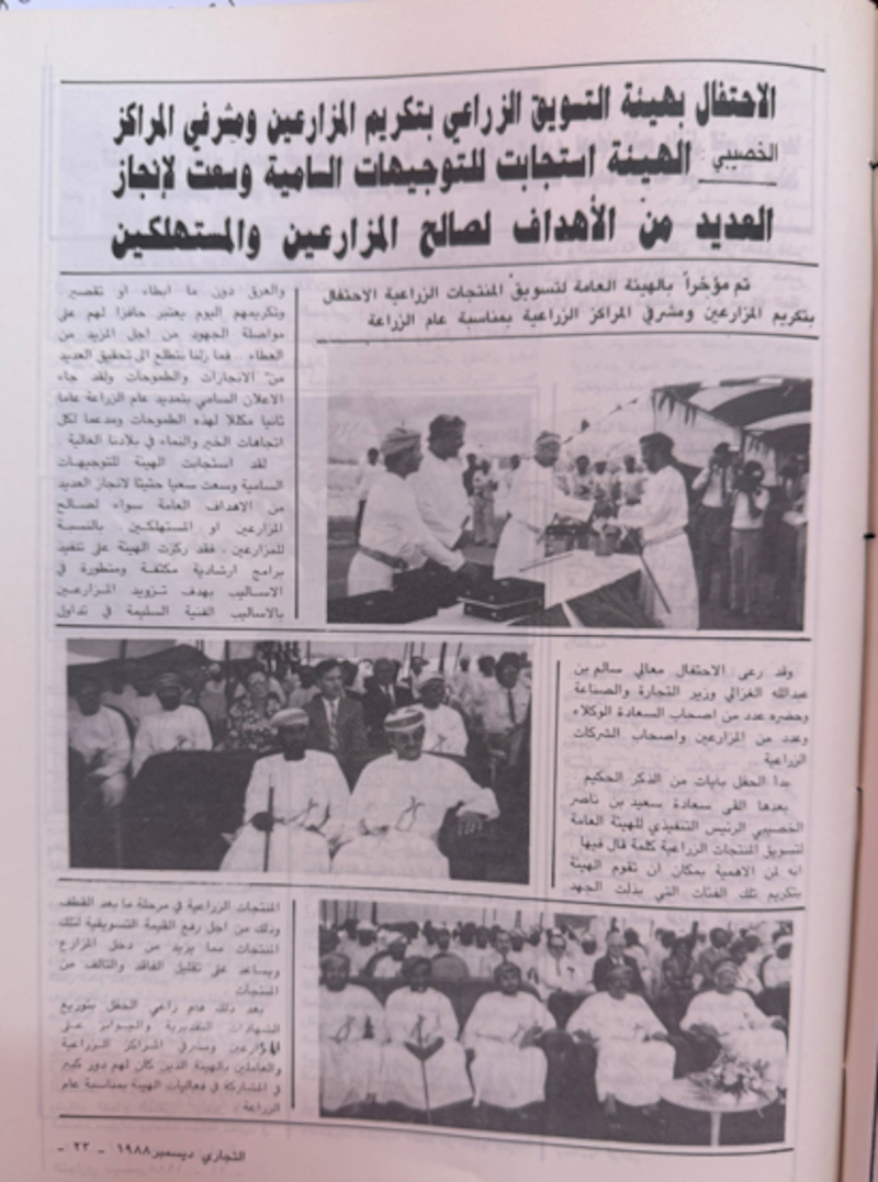 في عام 1980م كلّفت حكومة سلطنة عمان إحدى الشركات الهولندية العالمية بإجراء دراسة عن الأوضاع التسويقية الزراعية في البلاد في ذلك الوقت، وقد أثبتت الدراسة أن ما يقرب من ثلث المنتجات الزراعية العمانية من خضر وفواكه تتعرض للتلف بسبب عدم وجود أنظمة تسويقية فعّالة توصلها إلى مراكز الاستهلاك تحفظها بالطرق الصحية إلى حين تصريفها.