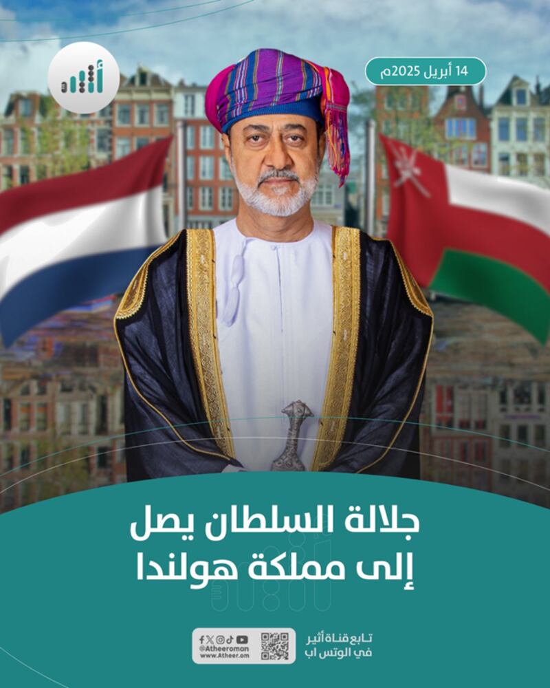 قام حضرة صاحب الجلالة السُّلطان هيثم بن طارق المعظم -حفظه الله ورعاه -بزيارة ”دولة“ إلى مملكة هولندا الصديقة استغرقت ثلاثة أيام من 14 - 16 أبريل 2025م