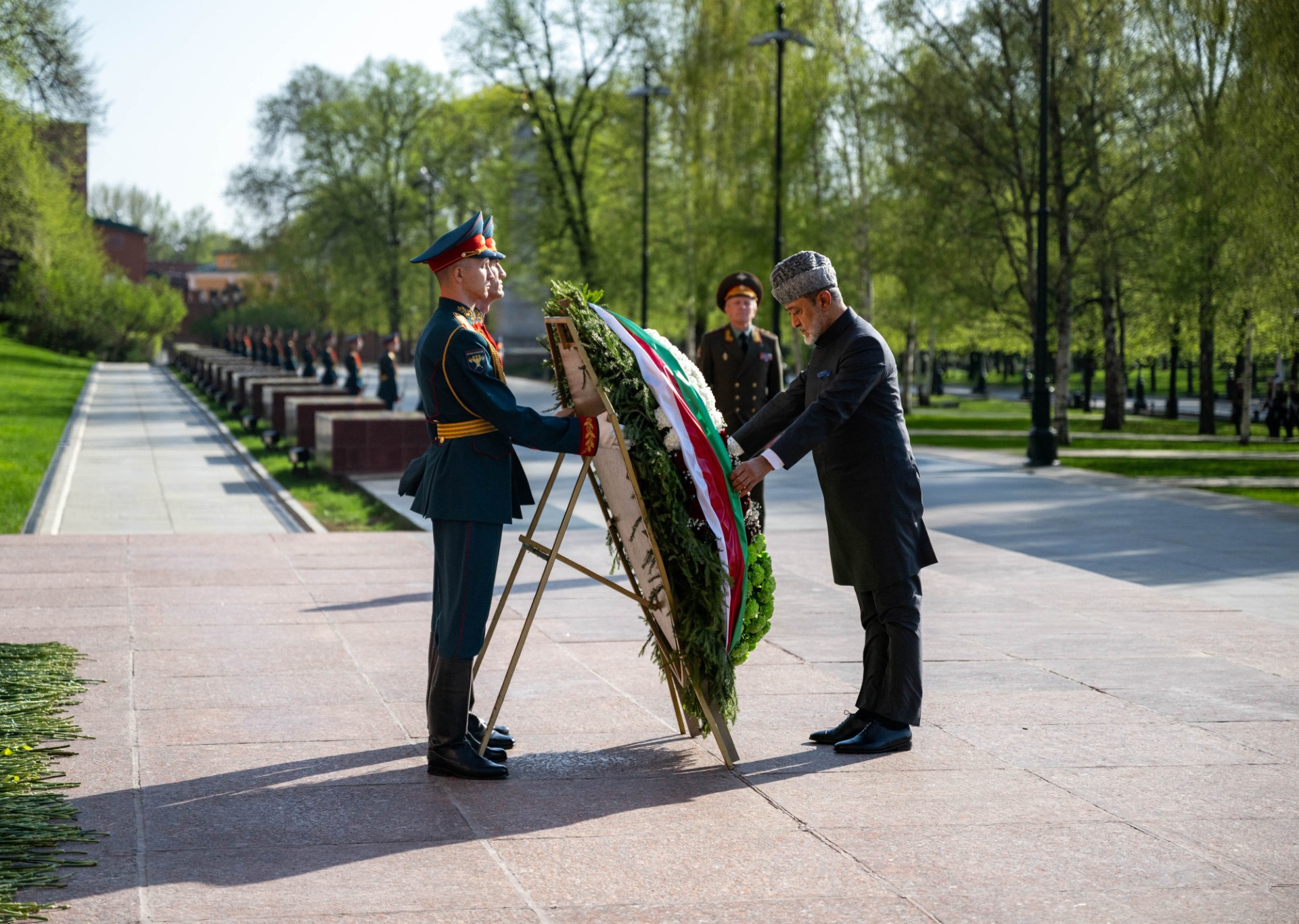 قام جلالته –أيده الله- بزيارة إلى النّصب التذكاريّ لضريح الجندي المجهول في حديقة ألكسندر بالساحة الحمراء بمدينة موسكو