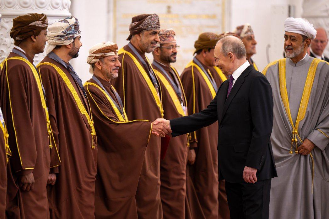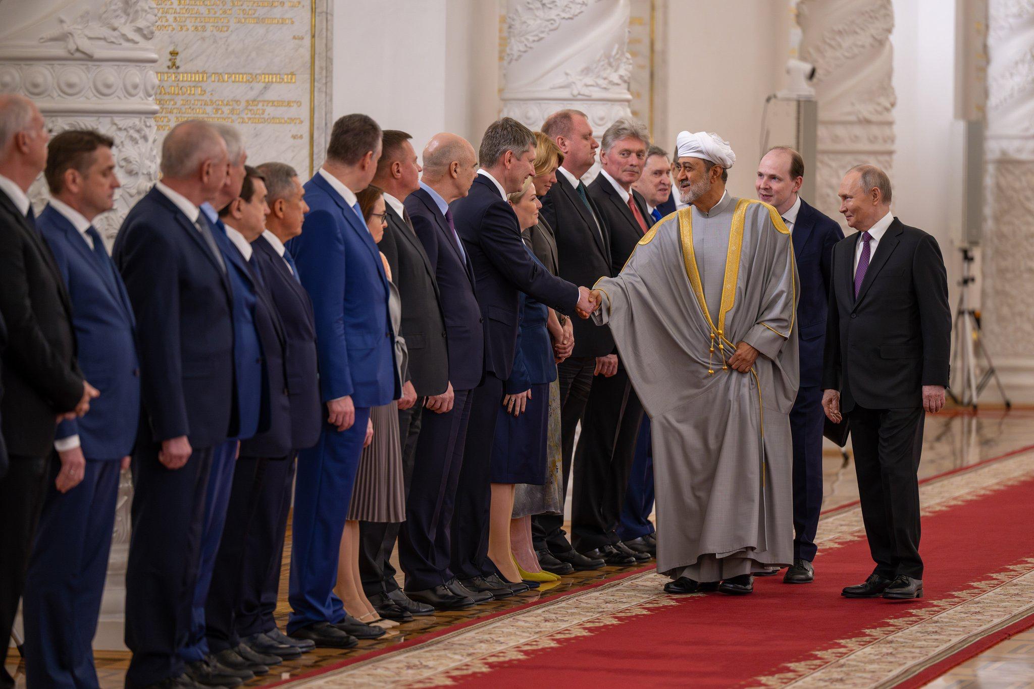 تكريمًا لحضرةِ صاحبِ الجلالةِ السُّلطان هيثم بن طارق المعظم -حفظهُ اللهُ ورعاهُ-، فخامةُ الرئيس فلاديمير بوتين رئيس روسيا الاتّحاديّة أقام مأدبة غداء عمل على شرف جلالةِ السُّلطان المعظم بقصر الكرملين.