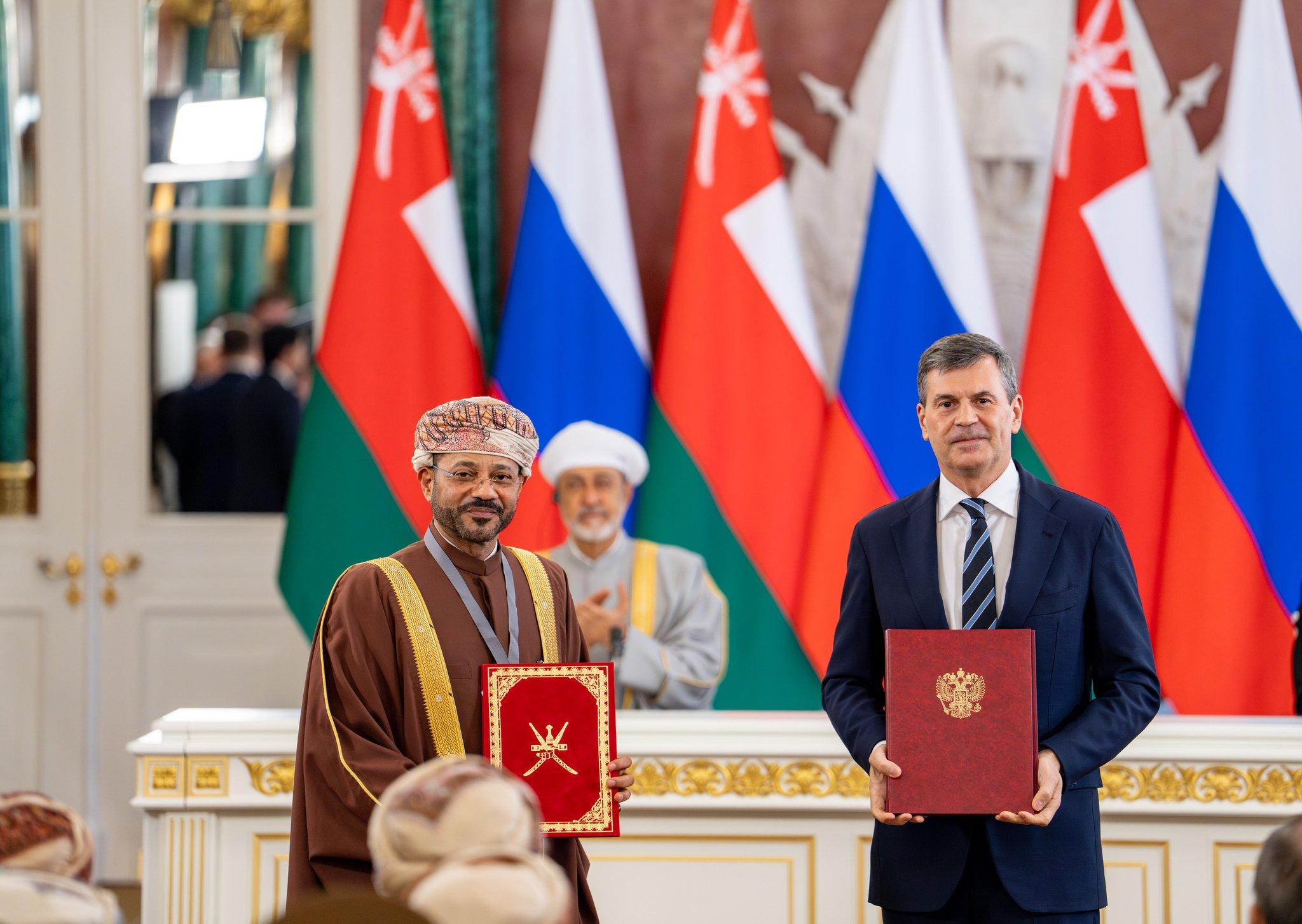 شهد حضرةُ صاحبِ الجلالةِ السُّلطان هيثم بن طارق المعظّم ـ حفظهُ اللهُ ورعاه ـ وفخامةُ الرئيس الروسي، مراسم التوقيع على اتفاقية وبروتوكول وتسع مذكرات تفاهم، وذلك في قصر الكرملين بالعاصمة الروسية موسكو، في إطار زيارة الدولة التي يقوم بها جلالتُه إلى روسيا الاتحادية الصديقة.