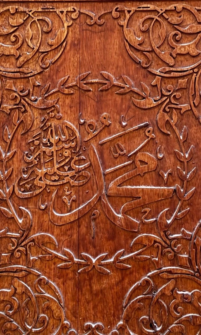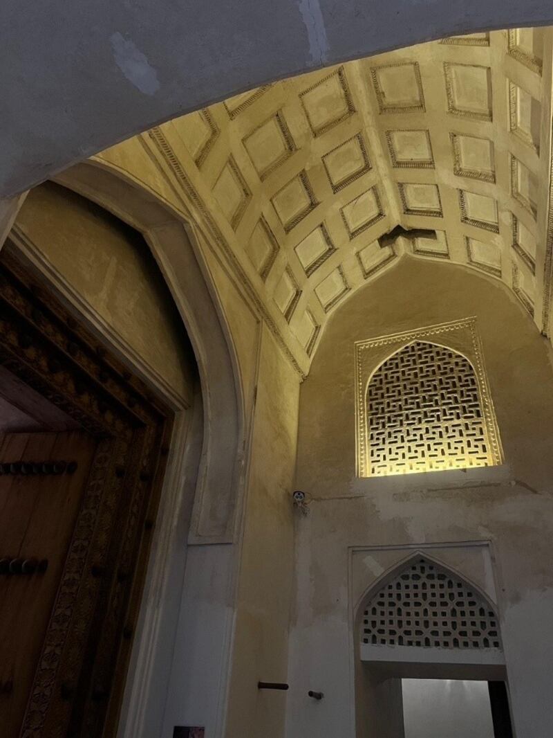 وبالحصن بابان خشبيان يبلغ ارتفاع كل منهما ثلاثة أمتار مزينة بنقوش جميلة، وتنتشر في سقوف القلعة وأقواسها نقوش هندسية بديعة من الفن الإسلامي، وكتابات عربية محفورة من الجص.