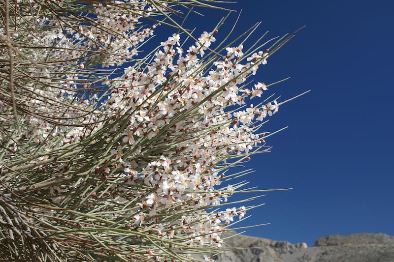 وأوضح الحاتمي في حديث مع ”أثير“ أن الشجرة، المعروفة أيضًا باسم اللوز العربي من الأنواع الخشبية المعمرة، وتنمو في المناطق الجبلية الوعرة والسفوح الصخرية على ارتفاعات تتراوح بين 850 و 1600 متر فوق سطح البحر، وتتميز بخصائص نباتية فريدة، إذ يصل ارتفاعها إلى نحو أربعة أمتار، ولها لحاء بني وساق رفيعة ملساء، وتزهر بين شهري فبراير وأبريل بأزهار بيضاء إلى وردية اللون.