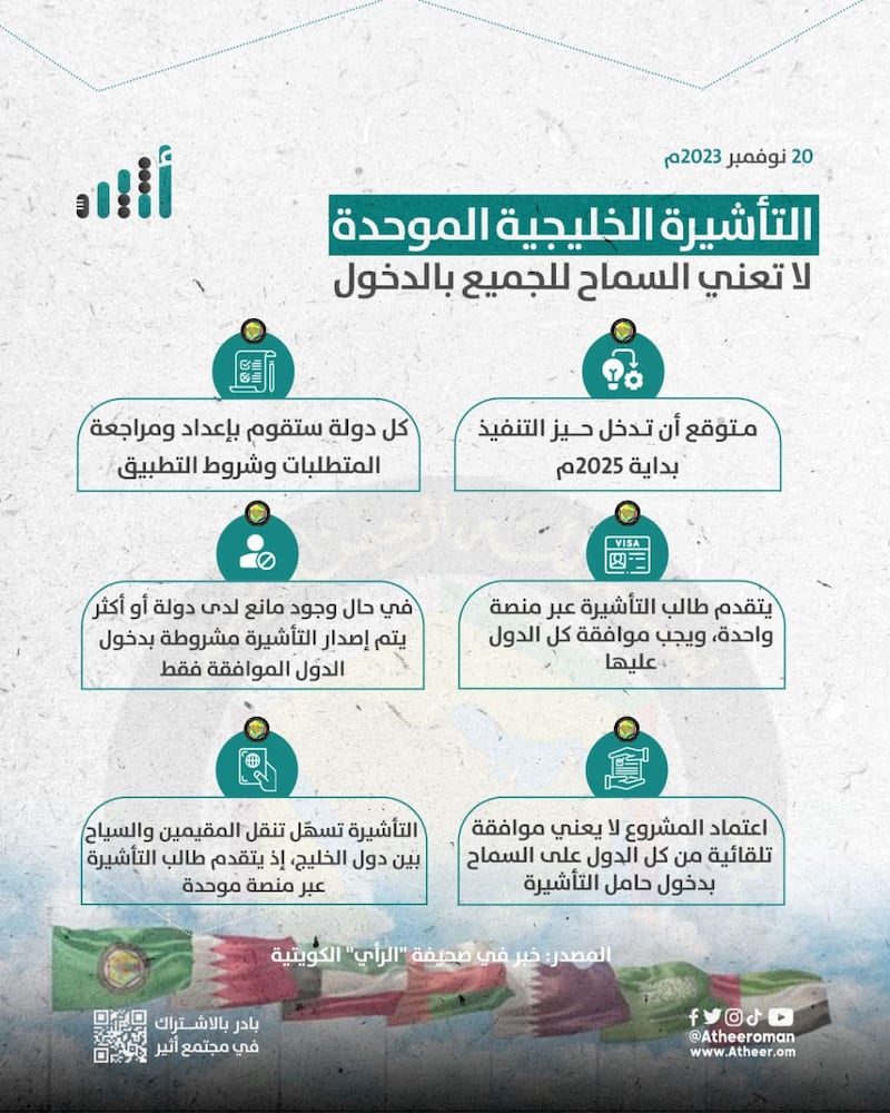 يذكر أن صحفية الرأي الكويتية نشرت في نوفمبر ٢٠٢٣ خبرا مفاده بأن التأشيرة الخليجية الموحدة لا تعني السماح للجميع بالدخول.