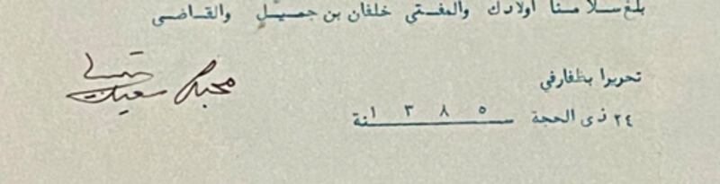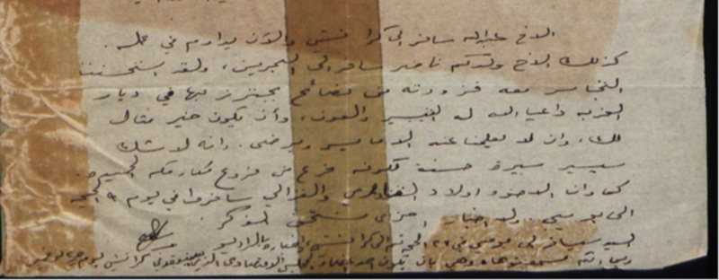 وثيقة تعود إلى عام 1948 فيها إشارة إلى سفر عبدالله الطائي إلى كراتشي