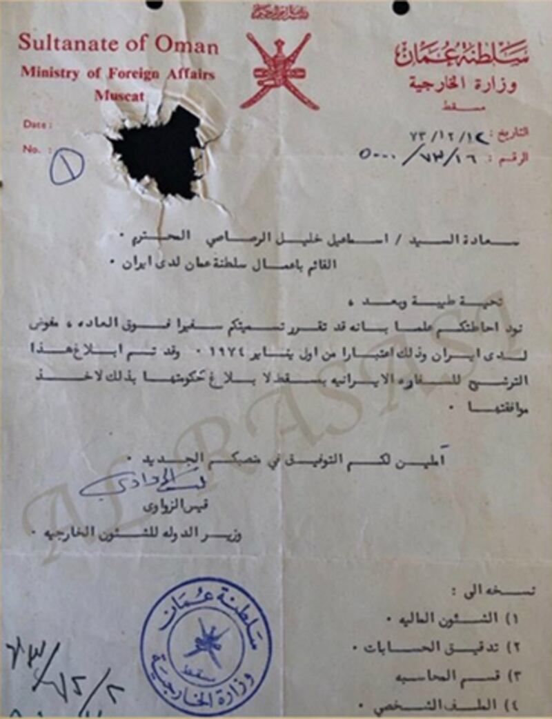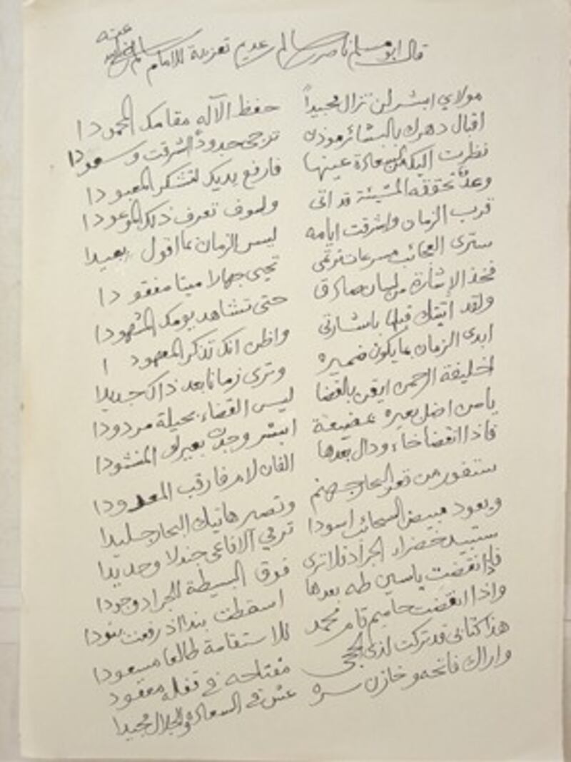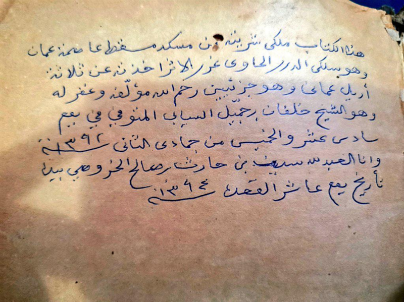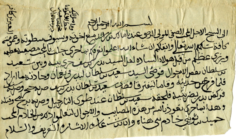 وثيقة تشير إلى حادثة مقتل السيد بدر بن سيف. أرشيف وثائق بيت الصفاة