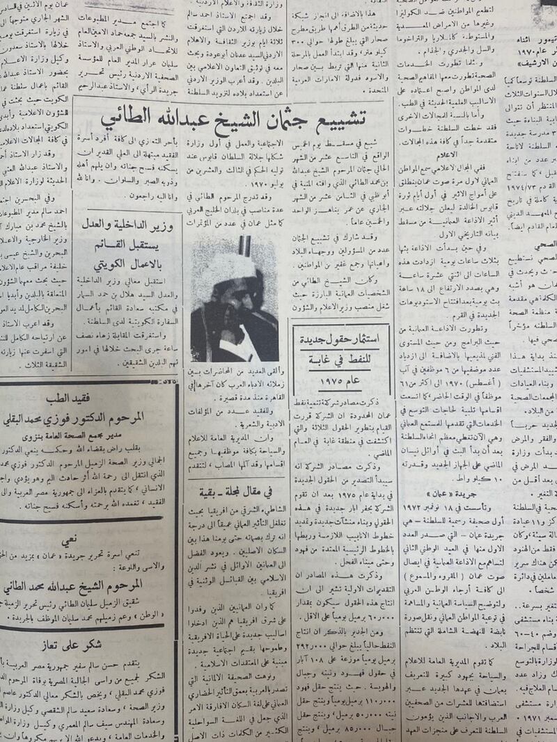 خبر تشييع جثمان الشيخ عبدالله الطائي. جريدة عمان