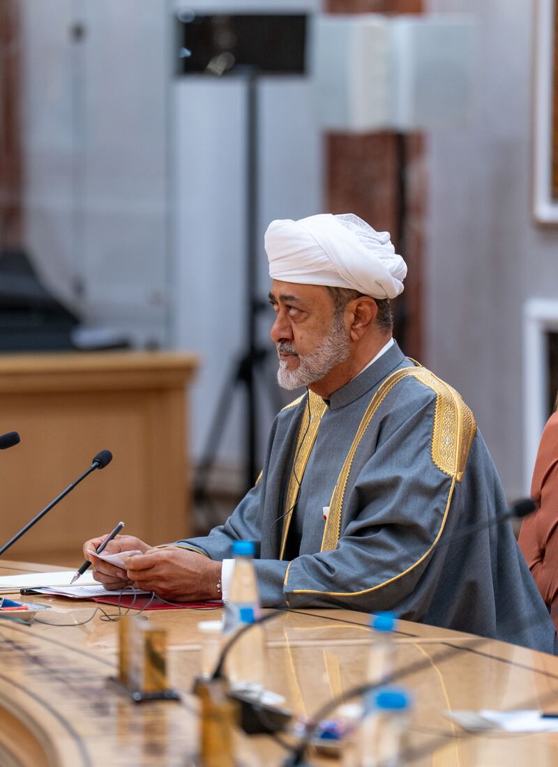 عقد حضرةُ صاحبِ الجلالةِ السُّلطان هيثم بن طارق المعظم /حفظهُ اللهُ ورعاهُ/ وفخامةُ الرئيس ألكسندر لوكاشينكو رئيس جمهورية بيلاروس جلسةَ مباحثاتٍ رسميّةً موسّعةً بحضور الوفدين الرّسميين من الجانبين. جرى خلال الجلسة استعراضُ فرص التّعاون الاقتصادي والاستثماري بين البلدين الصّديقين وتبادل وجهات النّظر حول عددٍ من الموضوعات المُهمّة بما يخدم المصالح المُشتركة لشعبي البلدين.
