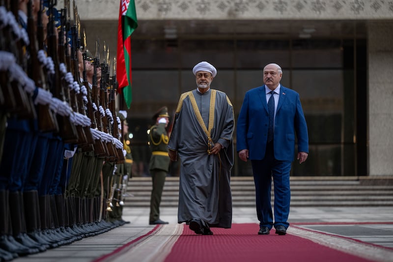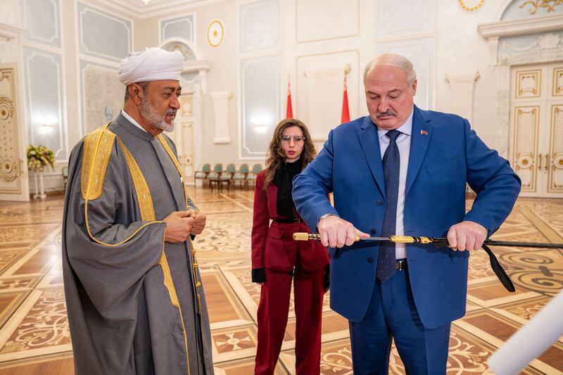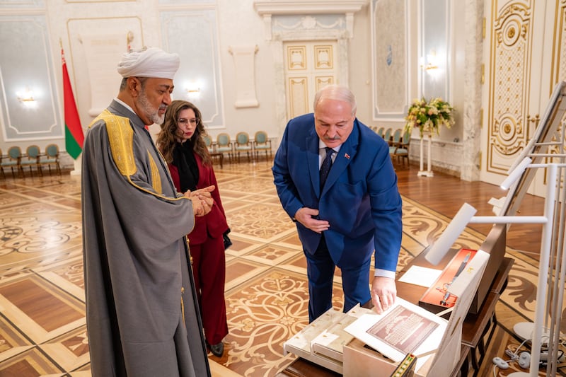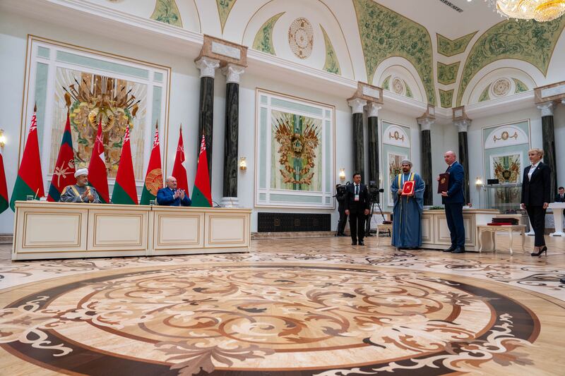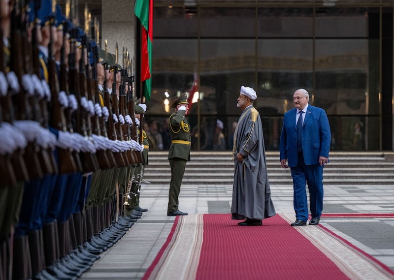 تكريمًا لحضرةِ صاحبِ الجلالةِ السُّلطان هيثم بن طارق المعظّم حفظهُ اللهُ ورعاهُ، أقام فخامةُ الرئيس ألكسندر لوكاشينكو رئيس جمهورية بيلاروس مساء 6 أكتوبر مأدبة عشاء رسميّةً على شرف جلالةِ السُّلطان بقصر الاستقلال بالعاصمة مينسك.