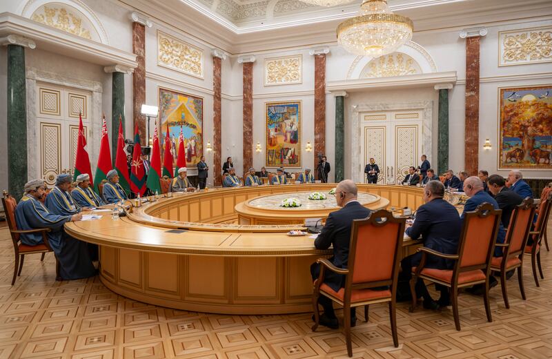 عددٌ من المسؤولين ورجال الأعمال العُمانيين والبيلاروس يستعرضون آفاق تطوير العلاقات الثُّنائية وتعزيز التّعاون الاقتصاديّ والاستثماريّ بين البلدين الصّديقين، في إطار زيارة “دولةٍ” يقوم بها جلالةُ السُّلطان المعظم -حفظهُ اللهُ ورعاهُ- إلى جمهورية بيلاروس