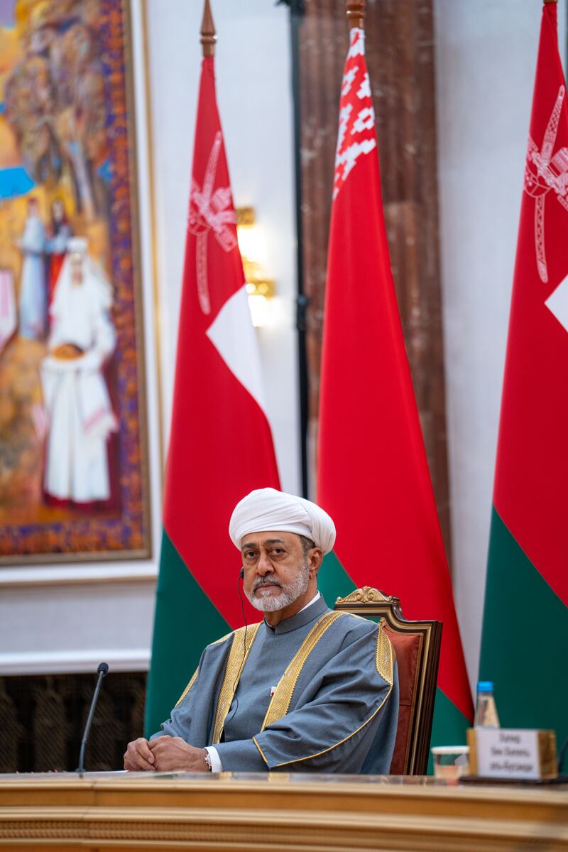 عبّر حضرةُ صاحبِ الجلالةِ السُّلطان هيثم بن طارق المُعظّم حفظهُ اللهُ ورعاهُ في كلمةٍ خلال جلسة المباحثات عن الارتياح والرّضا الكبيرين للحوار البنّاء والمُشاورات مع فخامتِه وعددٍ من أعضاء الحكومة البيلاروسية، مؤكدًا جلالته أيده الله على أن هذه الزيارة تمثّل فرصةً تاريخيّةً للاحتفاء بمسيرة العلاقات الطيّبة بين سلطنة عُمان وجمهورية بيلاروس واستكمالًا لزيارة فخامةِ الرئيس إلى مسقط نهاية العام الماضي، متطلّعًا لتعزيز هذه العلاقات في كافة النواحي والمجالات.