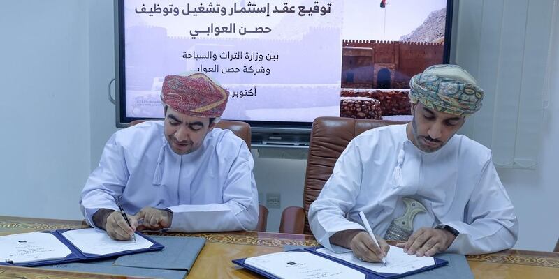 وقّعت وزارة التراث والسياحة مع مؤسسة حصن العوابي عقد لإدارة وتشغيل وتوظيف حصن العوابي بولاية العوابي بمحافظة جنوب الباطنة.