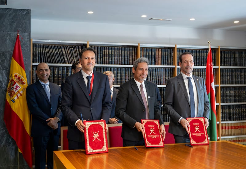 وقّع المذكرات من الجانب العُماني كلّ من معالي المهندس سالم بن ناصر العوفي وزير الطاقة والمعادن، وسعادة فيصل بن عبد الله الرواس رئيس مجلس إدارة غرفة تجارة وصناعة عُمان، وقيس بن سعود الزكواني الرئيس التنفيذي لشركة نماء لخدمات المياه، وحمد بن محمد النعماني الرئيس التنفيذي للشركة العُمانية للغاز الطبيعي المسال، ومن الجانب الإسباني سعادة خوسيه لويس بونيت رئيس غرفة التجارة والصناعة والخدمات والملاحة الإسبانية، وبابلو كالبويغ بصفته مفوّضًا عن شركة “أجواس دي فالنسيا” الإسبانية، وفرانسيسكو رينيس ماسانيت، الرئيس التنفيذي لشركة “ناتورجي” الإسبانية، وعن تحالف الشركات الدولية كلّ من ثورستين هيردان الرئيس التنفيذي لشركة “إتش أي أف إيميا”، وبابلو بولبير الرئيس التنفيذي لشركة “أكسونيا نورديكس للهيدروجين الأخضر”، وهيثم مكي الرئيس التنفيذي لشركة الميرا للاستثمار.