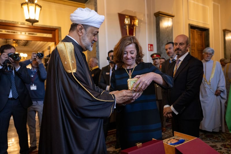 تبادل جلالة السُّلطان المعظَّم -حفظهُ اللهُ ورعاهُ- وجلالةُ ملكِ إسبانيا الأوسمةَ والهدايا التذكاريةَ في قصر ثارثويلا بمدريد، حيث منح جلالةُ الملك فيليبي السادس جلالةَ السُّلطان المعظَّم “وسام إيزابيلا”؛ أرفعَ وسامٍ ملكيٍّ في مملكةِ إسبانيا، كما قام جلالةُ الملك بتكريم أعضاء الوفد الرسمي المرافق لجلالةِ السُّلطان بعددٍ من الأوسمة الملكية، علاوةً على تبادلِ الهدايا التذكارية بين الجانبين.