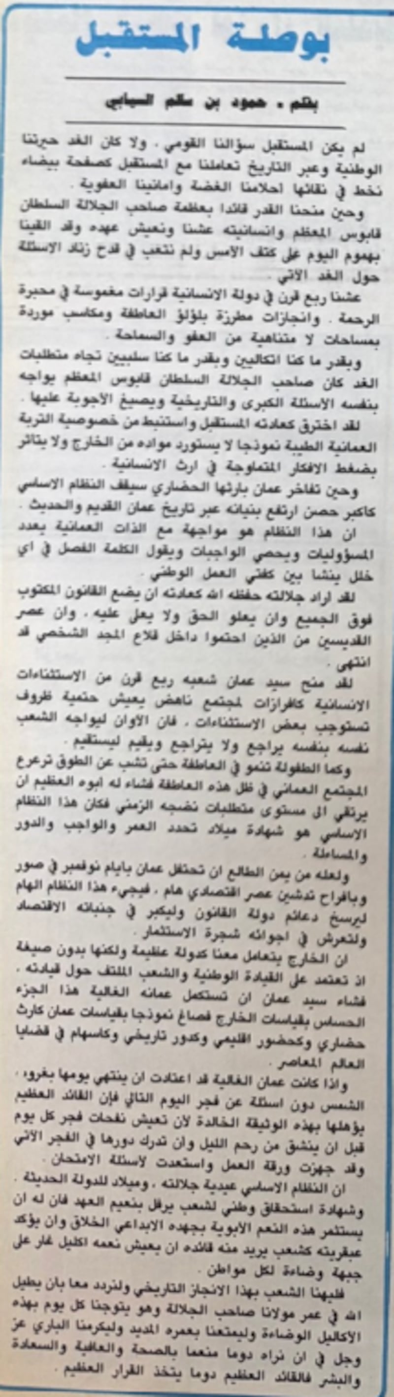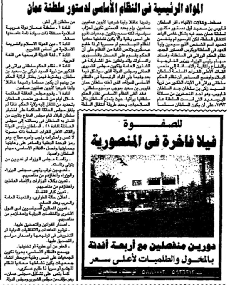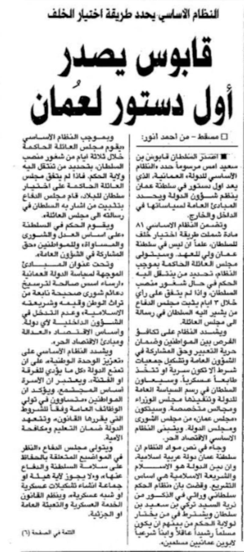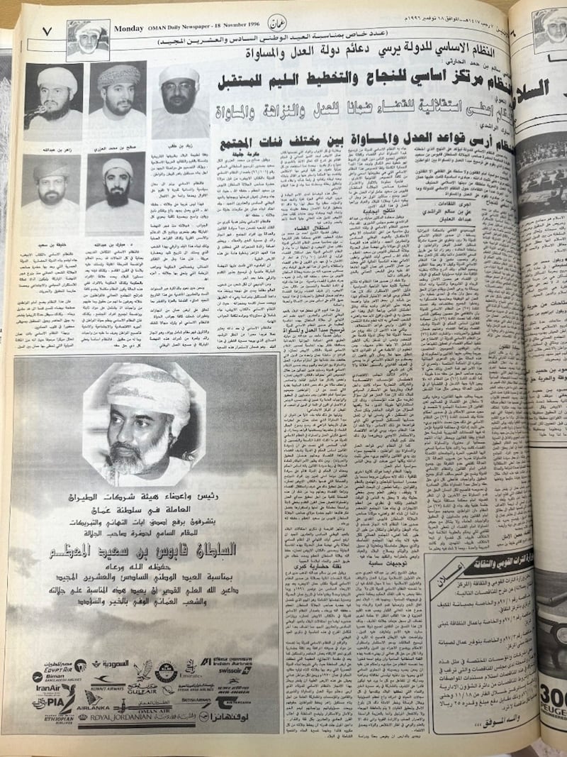 - أعداد مختلفة من صحيفة عمان في شهر نوفمبر 1996.