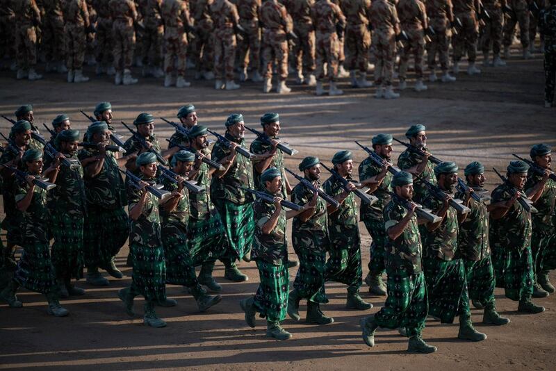 تلا ذلك استعراضُ طوابير الزيّ المموّه التي تمثّل أسلحة قوات السُّلطان المسلّحة، والحرس السُّلطانيّ العُمانيّ، وقوة السُّلطان الخاصّة، وشُرطة عُمان السُّلطانيّة، مرورًا من أمام المقصورة السُّلطانيّة مؤدّيةً التحيّةَ العسكريّةَ لسُلطان البلاد المُفدّى.