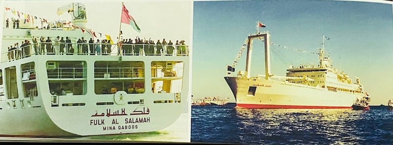 وكانت السفينة " فلك السلامة" قد وصلت في يوم 17نوفمبر من عام 1991م إلى ميناء السلطان قابوس بمسقط أثناء احتفالات البلاد بالعيد الوطني العشرين، حيث أعد لها استقبال رسمي وشعبي قدمت خلاله الفرق الأهلية ألوانًا متعددة من فنونها الشعبية. كما قام العلماء والمشاركون من البعثة ببرنامج حافل من الأنشطة تمثلت في مشاركتهم في احتفالات البلاد بالعيد الوطني، بالإضافة الى زيارة العديد من المواقع الأثرية خاصة تلك التي أدرجتها اليونسكو ضمن الآثار العالمية مثل سور بهلاء. كما أقيمت في اليوم العشرين من نوفمبر ندوة دولية حول أهمية التراث البحري العماني لطريق الحرير، ثم واصلت السفينة سيرها يوم 25 نوفمبر الى بقية موانئ باكستان والهند والشرق الأقصى مروراً بالصين وحتى أوساكا باليابان، وقد شملت الرحلة 21 ميناء في 16 دولة.