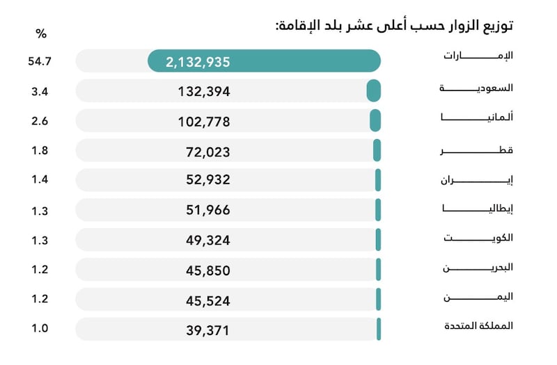 الإمارات العربية المتحدة: 2,132,935 زائرًا بنسبة 54.7%