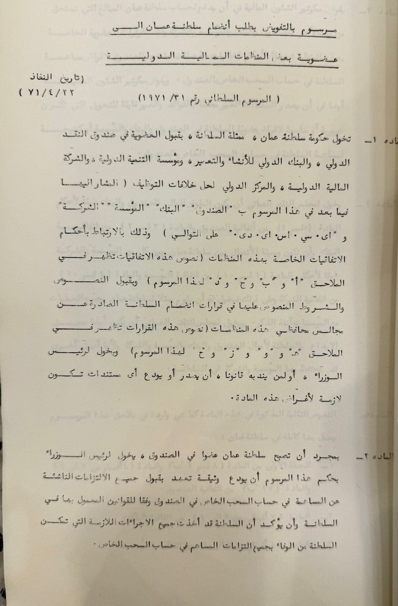 مرسوم بالتفويض بطلب انضمام سلطنة عمان إلى عضوية بعض المنظمات المالية الدولية: