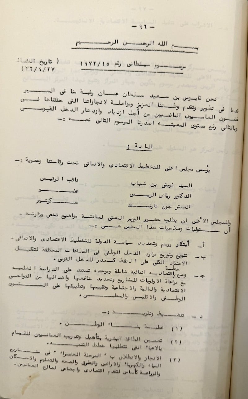 المرسوم السلطاني رقم (15/1972) بشأن المجلس الأعلى للتخطيط الاقتصادي والإنمائي