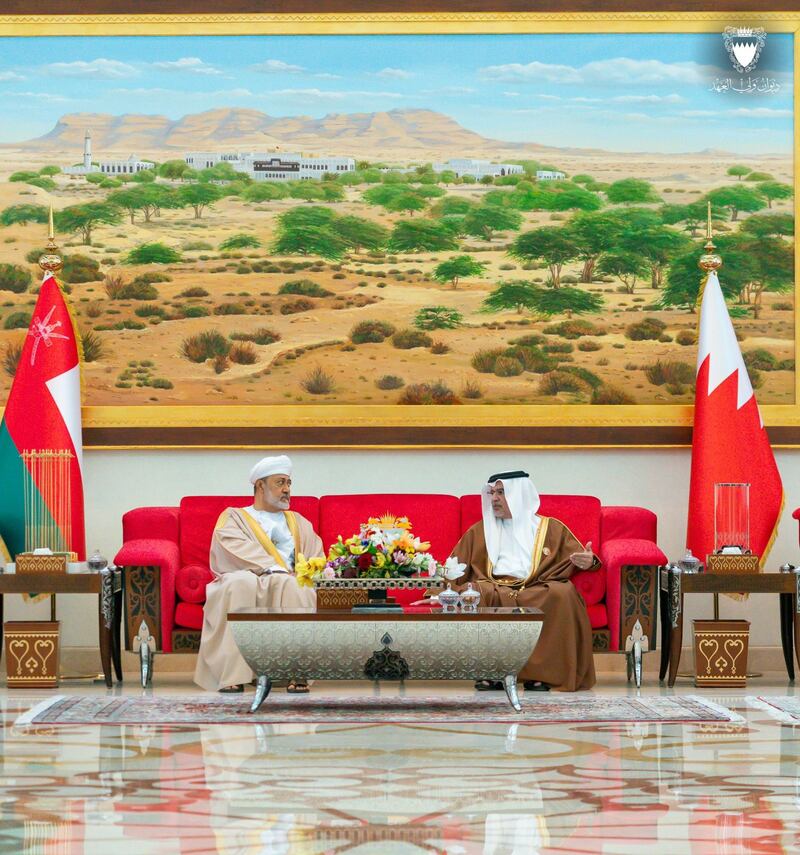 بعد ذلك اصطحب صاحبُ السموِّ الملكي الأميرُ سلمان بن حمد آل خليفة جلالةَ السُّلطان المعظّم إلى قاعة الاستقبال، حيث جدّد سموّه الترحيب البالغ بجلالته في بلده الثاني. من جانبه عبّر جلالةُ السُّلطان عن خالص شكره لسموّه على حفاوة الاستقبال وكرم الضيافة.