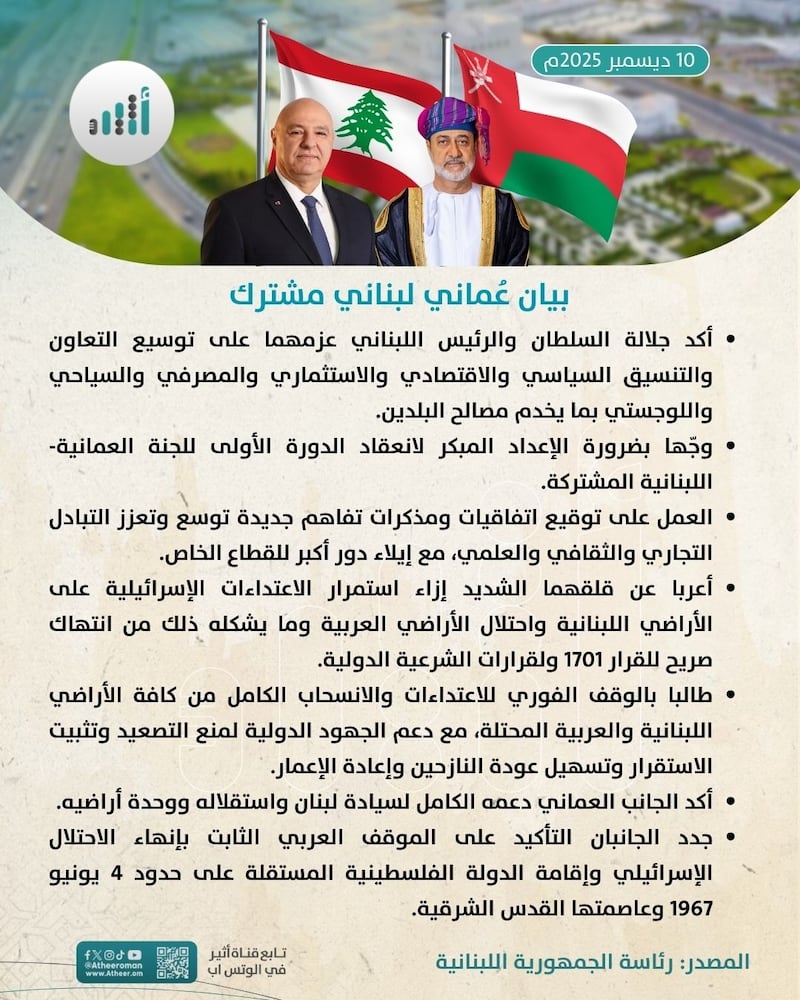بيان عُماني لبناني مشترك