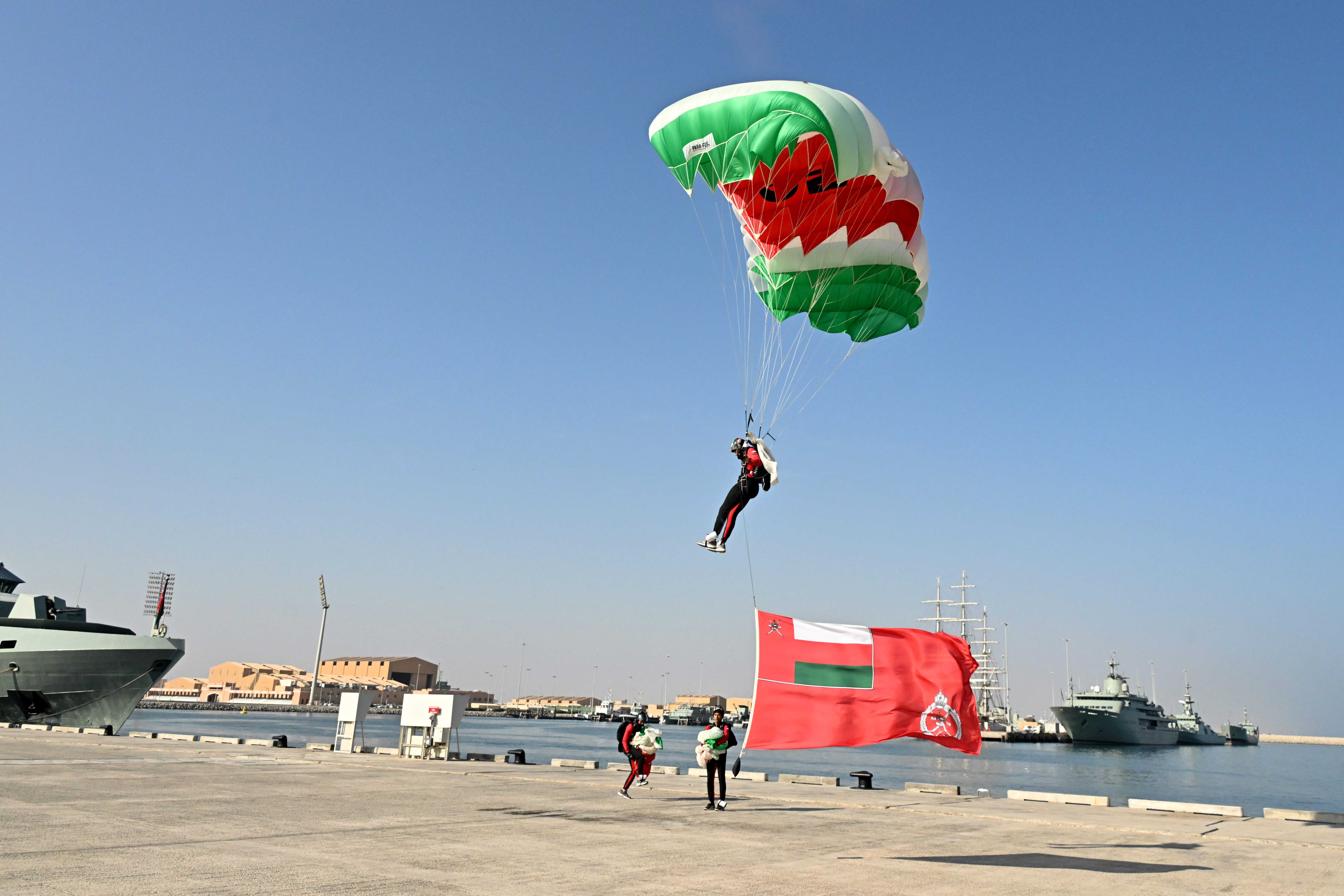 كما قدم الفريق الوطني للقفز الحر بالجيش السُّلطاني العُماني عرضًا مظليًّا في سماء ميدان الاحتفال جسد مدى الكفاءة والمهارة العالية لمنتسبيه، وقد عكس الاحتفال مستوى الكفاءة والجاهزيّة وما تشهده قواتُ السُّلطان المسلّحة من تطوّر وتقدّم في ظلّ القيادة الحكيمة لحضرة صاحب الجلالة السُّلطان هيثم بن طارق المعظم القائد الأعلى -حفظهُ اللهُ ورعاهُ-.