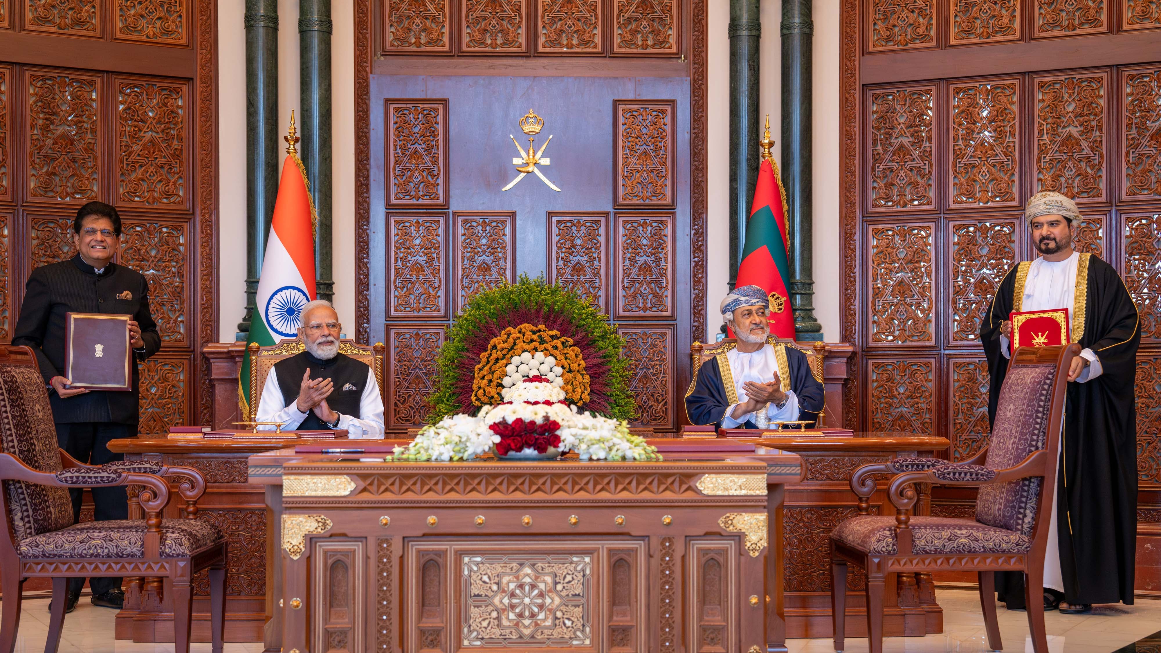 شهد حضرة صاحب الجلالة السلطان هيثم بن طارق المعظم -حفظه الله ورعاه- ودولة رئيس وزراء جمهورية الهند ناريندرا مودي اليوم، توقيع اتفاقية الشراكة الاقتصادية الشاملة بين سلطنة عُمان وجمهورية الهند.