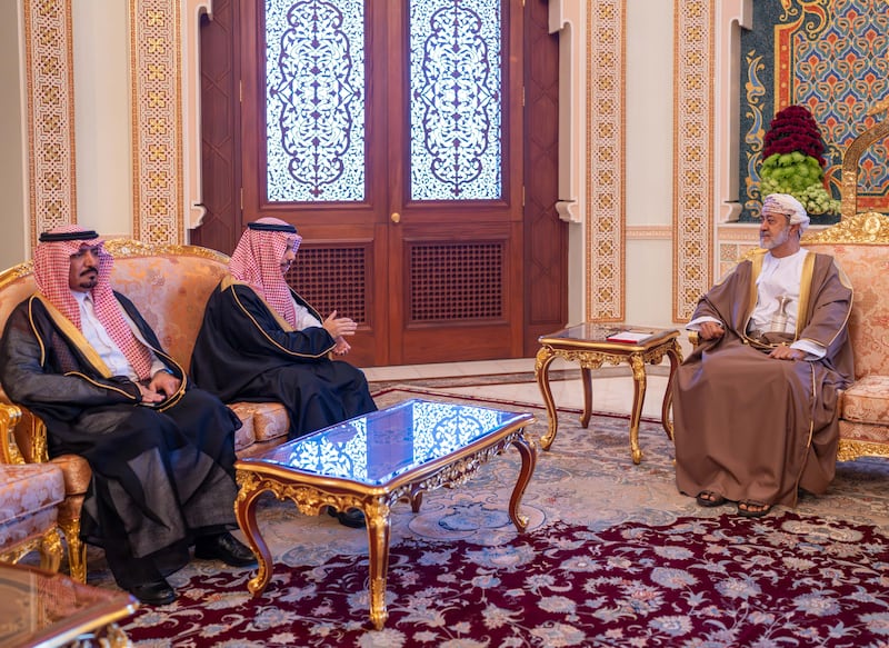 وقد نقل سُموّ الأمير خلال المقابلة تحيّاتِ خادم الحرمين الشّريفين الملك سلمان بن عبد العزيز آل سعود، ملك المملكة العربيّة السعوديّة الشّقيقة، وتحيّاتِ صاحب السُّمو الملكي الأمير محمد بن سلمان بن عبد العزيز آل سعود وليّ العهد رئيس مجلس الوزراء، وتمنّياتِهما الصّادقة لجلالةِ السُّلطان المعظّم بموفور الصّحة والعافية، وللشعب العُماني بمزيدٍ من الرّفعة والازدهار.