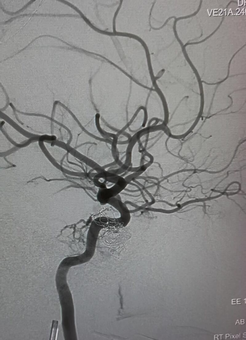 وأُجريت العملية باستخدام القسطرة العصبية في مستشفى صحار، وهي تقنية علاجية دقيقة تُنفذ عبر الأوعية الدموية دون الحاجة إلى تدخل جراحي تقليدي، ما يُسهم في تقليل المخاطر وتسريع فترة التعافي وقد تكلّلت العملية بالنجاح، وتمكّن الفريق الطبي من علاج التشابك الوعائي بكفاءة عالية، مع تحسُّن ملحوظ في الحالة الصحية للمريض.